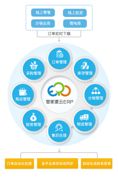 全面解决网店管理问题,无论您是一开始选择了网店创业,还是从传统实体业务向网店业务拓展,管家婆云ERP都将助您建立起一个规范、高效的信息化管理平台,告别网店管理的混乱局面